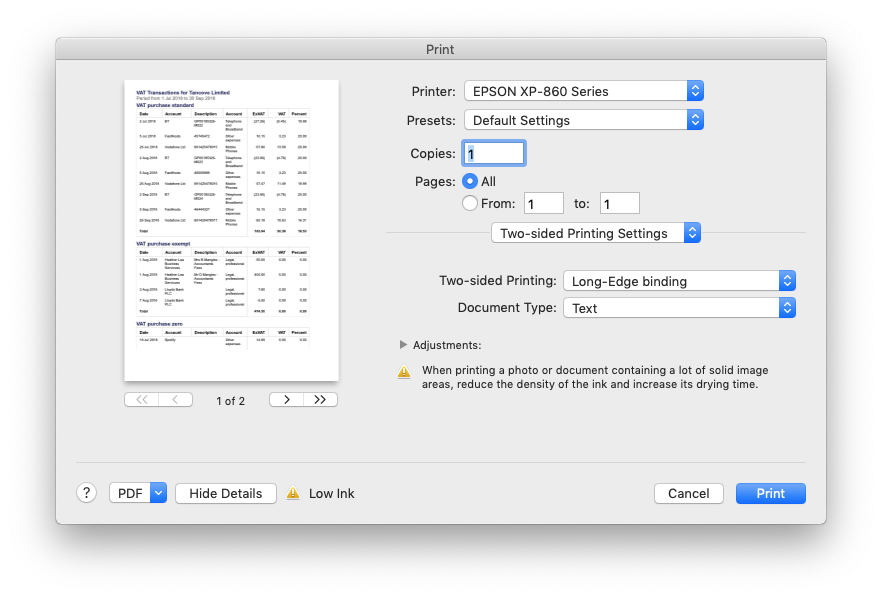Macos 10 13 high sierra hello i just bought a deskjet 2632 the other day and i tried to print double sided through wifi but failed the double side tick box is grey.