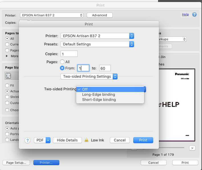 Epson two sided printing mac greyed out.